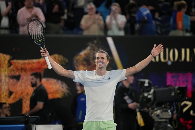 Alexander Zverev - C.Alcaraz battu par A.Zverev (6-1, 6-3, 6-7 [2], 6-4) à l'Open d'Australie à Melbourne, le 24 janvier 2024. Il affrontera D.Medvedev en demi-finale. © Panoramic / Bestimage C.Alcaraz beaten by A.Zverev (6-1, 6-3, 6-7 [2], 6-4) at the Australian Open in Melbourne, January 24, 2024. He will face D.Medvedev in the semi-finals -final.