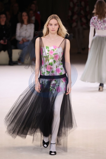 Chanel Model On Catwalk, Paris Haute Couture Fashion Week 2024 HC For Spring Summer, Defile, Fashion Show Runway Collection, Modelwear, Modeschau Laufsteg France, PARHCS24, Credit:www.fashionpps.com / Avalon