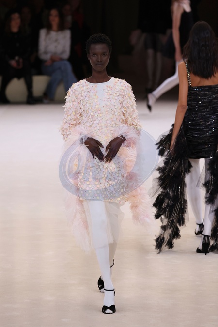 Chanel Model On Catwalk, Paris Haute Couture Fashion Week 2024 HC For Spring Summer, Defile, Fashion Show Runway Collection, Modelwear, Modeschau Laufsteg France, PARHCS24, Credit:www.fashionpps.com / Avalon