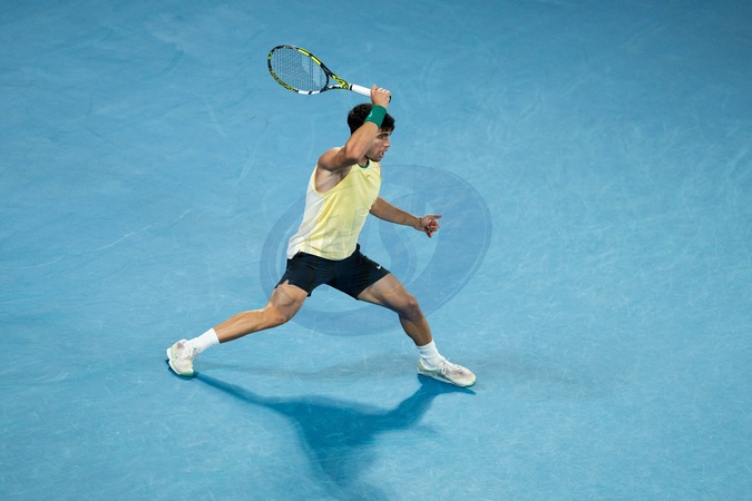 Carlos Alcaraz (ESP) lors du quart de finale de l'Open d'Australie au Rod Laver Arena à Melbourne, Australie, le 25 janvier 2024. A. Zverev gagne 6-1, 6-3, 6-7 [2], 6-4. © Virginie Bouyer/Panoramic/Bestimage Quarterfinals singles match between Carlos Alcaraz of Spain and Alexander Zverev of Germany during the 2024 Australian Open at Melbourne Park on January 24, 2024 in Melbourne, Australia.