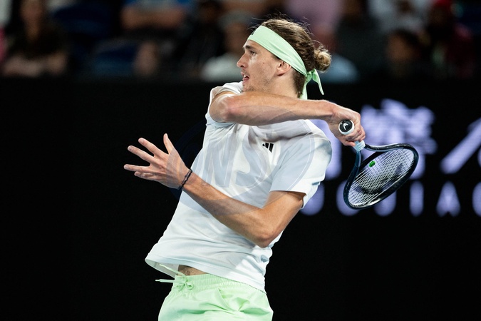 Alexander Zverev (GER) lors du quart de finale de l'Open d'Australie au Rod Laver Arena à Melbourne, Australie, le 25 janvier 2024. A. Zverev gagne 6-1, 6-3, 6-7 [2], 6-4. © Virginie Bouyer/Panoramic/Bestimage Quarterfinals singles match between Carlos Alcaraz of Spain and Alexander Zverev of Germany during the 2024 Australian Open at Melbourne Park on January 24, 2024 in Melbourne, Australia.