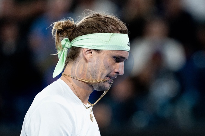 Alexander Zverev (GER) lors du quart de finale de l'Open d'Australie au Rod Laver Arena à Melbourne, Australie, le 25 janvier 2024. A. Zverev gagne 6-1, 6-3, 6-7 [2], 6-4. © Virginie Bouyer/Panoramic/Bestimage Quarterfinals singles match between Carlos Alcaraz of Spain and Alexander Zverev of Germany during the 2024 Australian Open at Melbourne Park on January 24, 2024 in Melbourne, Australia.