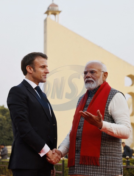 Le Premier ministre indien Narendra Modi et le président français Emmanuel Macron lors d'une visite à l'observatoire Janta Mantar à Jaipu