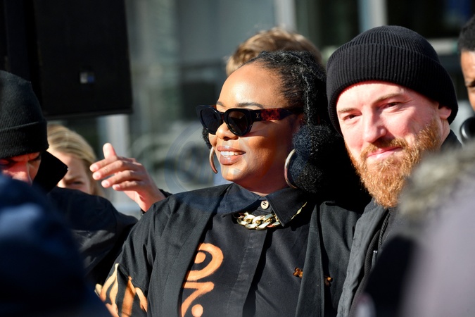 Yemi Alade, marraine du MIDEM+24, a participé à la traditionnelle prise d'empreintes de mains sur les marches du Palais des Festivals de Cannes, le 25 janvier 2024. Son empreinte rejoindra les 450 autres réalisées pour le "Chemin des Etoiles" de Cannes, créant ainsi une constellation éclatante de talents. © Bruno Bebert/Bestimage Taditional handprint taking on the steps of the Palais des Festivals during MIDEM+24, in Cannes, France, on January 24, 2024.