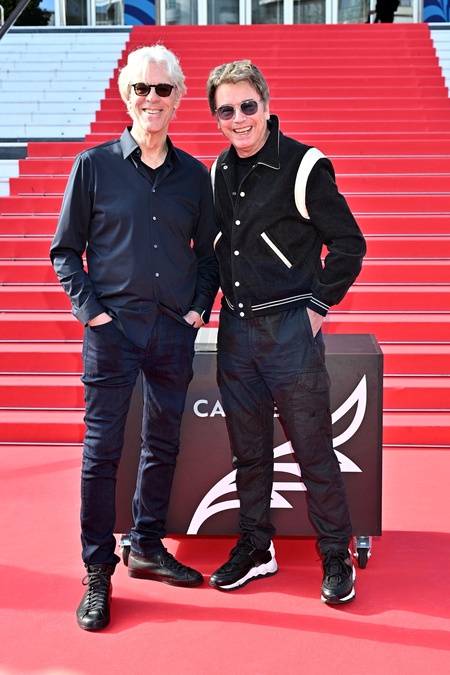 Stewart Copeland, musicien, batteur et fondateur du groupe The Police, et Jean Michel Jarre, parrains du MIDEM+24, ont participé à la traditionnelle prise d'empreintes de mains sur les marches du Palais des Festivals de Cannes, le 25 janvier 2024. Leurs empreintes rejoindront les 450 autres réalisées pour le "Chemin des Etoiles" de Cannes, créant ainsi une constellation éclatante de talents. © Bruno Bebert/Bestimage Taditional handprint taking on the steps of the Palais des Festivals during MIDEM+24, in Cannes, France, on January 24, 2024.