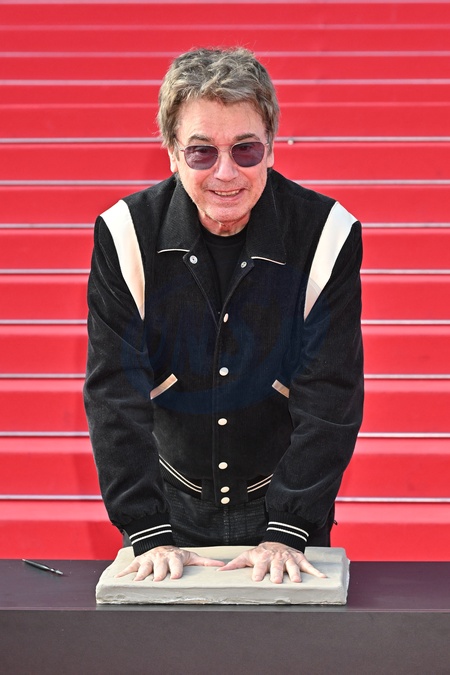 Jean Michel Jarre, marraine et parrains du MIDEM+24, a participé à la traditionnelle prise d'empreintes de mains sur les marches du Palais des Festivals de Cannes, le 25 janvier 2024. Son empreinte rejoindra les 450 autres réalisées pour le "Chemin des Etoiles" de Cannes, créant ainsi une constellation éclatante de talents. © Bruno Bebert/Bestimage Taditional handprint taking on the steps of the Palais des Festivals during MIDEM+24, in Cannes, France, on January 24, 2024.