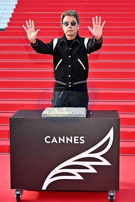 Jean Michel Jarre, marraine et parrains du MIDEM+24, a participé à la traditionnelle prise d'empreintes de mains sur les marches du Palais des Festivals de Cannes, le 25 janvier 2024. Son empreinte rejoindra les 450 autres réalisées pour le "Chemin des Etoiles" de Cannes, créant ainsi une constellation éclatante de talents. © Bruno Bebert/Bestimage Taditional handprint taking on the steps of the Palais des Festivals during MIDEM+24, in Cannes, France, on January 24, 2024.