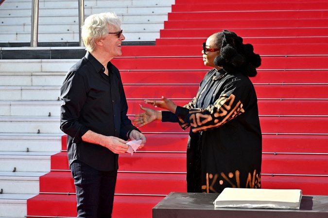 Yemi Alade, Stewart Copeland i Jean-Michel Jarre biorą udział w tradycyjnym odcisku dłoni na schodach Palais des Festivals w Cannes podczas MIDEM+24