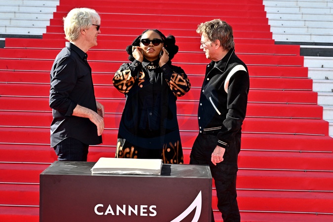 Yemi Alade, Stewart Copeland i Jean-Michel Jarre biorą udział w tradycyjnym odcisku dłoni na schodach Palais des Festivals w Cannes podczas MIDEM+24