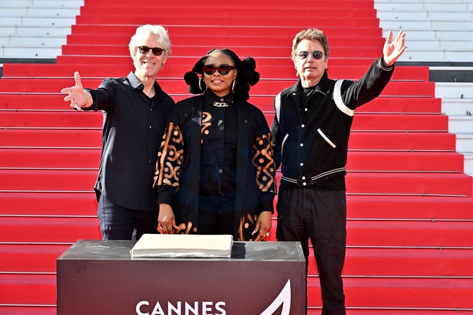 Yemi Alade, Stewart Copeland i Jean-Michel Jarre biorą udział w tradycyjnym odcisku dłoni na schodach Palais des Festivals w Cannes podczas MIDEM+24