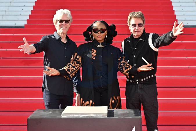 Yemi Alade, Stewart Copeland i Jean-Michel Jarre biorą udział w tradycyjnym odcisku dłoni na schodach Palais des Festivals w Cannes podczas MIDEM+24