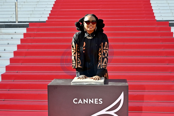 Yemi Alade, marraine du MIDEM+24, a participé à la traditionnelle prise d'empreintes de mains sur les marches du Palais des Festivals de Cannes, le 25 janvier 2024. Son empreinte rejoindra les 450 autres réalisées pour le "Chemin des Etoiles" de Cannes, créant ainsi une constellation éclatante de talents. © Bruno Bebert/Bestimage Taditional handprint taking on the steps of the Palais des Festivals during MIDEM+24, in Cannes, France, on January 24, 2024.