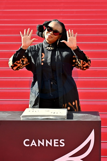 Yemi Alade, marraine du MIDEM+24, a participé à la traditionnelle prise d'empreintes de mains sur les marches du Palais des Festivals de Cannes, le 25 janvier 2024. Son empreinte rejoindra les 450 autres réalisées pour le "Chemin des Etoiles" de Cannes, créant ainsi une constellation éclatante de talents. © Bruno Bebert/Bestimage Taditional handprint taking on the steps of the Palais des Festivals during MIDEM+24, in Cannes, France, on January 24, 2024.