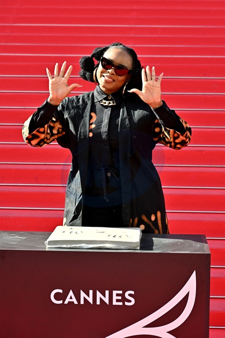Yemi Alade, marraine du MIDEM+24, a participé à la traditionnelle prise d'empreintes de mains sur les marches du Palais des Festivals de Cannes, le 25 janvier 2024. Son empreinte rejoindra les 450 autres réalisées pour le "Chemin des Etoiles" de Cannes, créant ainsi une constellation éclatante de talents. © Bruno Bebert/Bestimage Taditional handprint taking on the steps of the Palais des Festivals during MIDEM+24, in Cannes, France, on January 24, 2024.