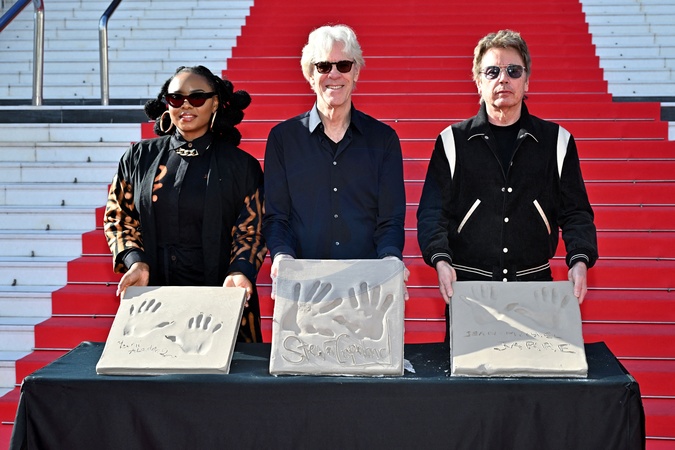 Yemi Alade, Stewart Copeland i Jean-Michel Jarre biorą udział w tradycyjnym odcisku dłoni na schodach Palais des Festivals w Cannes podczas MIDEM+24