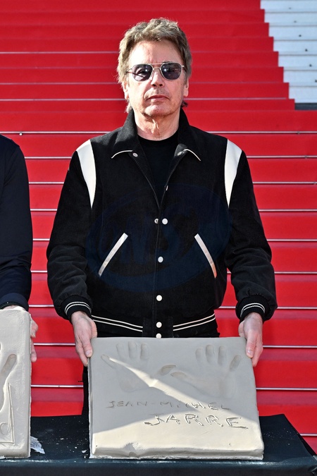 Jean Michel Jarre, marraine et parrains du MIDEM+24, a participé à la traditionnelle prise d'empreintes de mains sur les marches du Palais des Festivals de Cannes, le 25 janvier 2024. Son empreinte rejoindra les 450 autres réalisées pour le "Chemin des Etoiles" de Cannes, créant ainsi une constellation éclatante de talents. © Bruno Bebert/Bestimage Taditional handprint taking on the steps of the Palais des Festivals during MIDEM+24, in Cannes, France, on January 24, 2024.