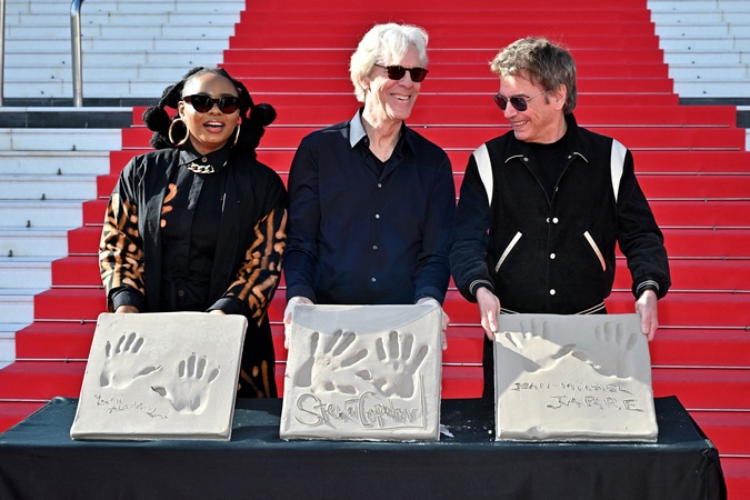 Yemi Alade, Stewart Copeland i Jean-Michel Jarre biorą udział w tradycyjnym odcisku dłoni na schodach Palais des Festivals w Cannes podczas MIDEM+24