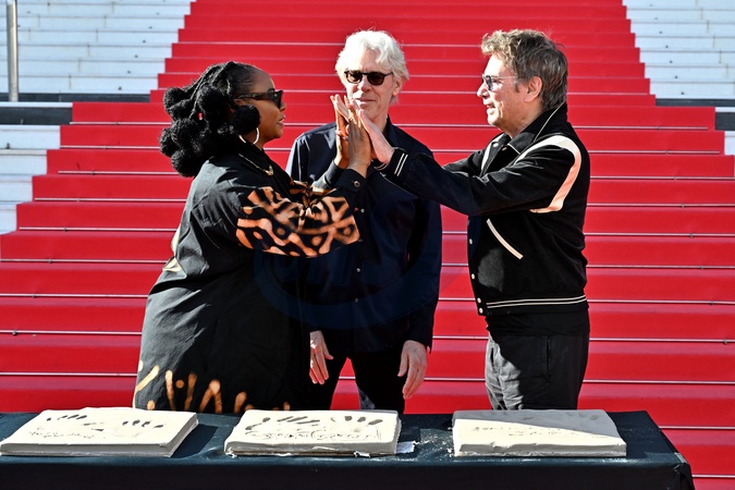 Yemi Alade, Stewart Copeland i Jean-Michel Jarre biorą udział w tradycyjnym odcisku dłoni na schodach Palais des Festivals w Cannes podczas MIDEM+24