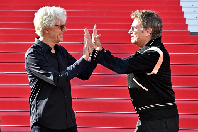 Stewart Copeland, musicien, batteur et fondateur du groupe The Police, et Jean Michel Jarre, parrains du MIDEM+24, ont participé à la traditionnelle prise d'empreintes de mains sur les marches du Palais des Festivals de Cannes, le 25 janvier 2024. Leurs empreintes rejoindront les 450 autres réalisées pour le "Chemin des Etoiles" de Cannes, créant ainsi une constellation éclatante de talents. © Bruno Bebert/Bestimage Taditional handprint taking on the steps of the Palais des Festivals during MIDEM+24, in Cannes, France, on January 24, 2024.