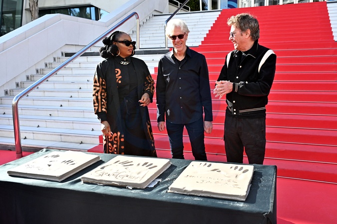 Yemi Alade, Stewart Copeland i Jean-Michel Jarre biorą udział w tradycyjnym odcisku dłoni na schodach Palais des Festivals w Cannes podczas MIDEM+24