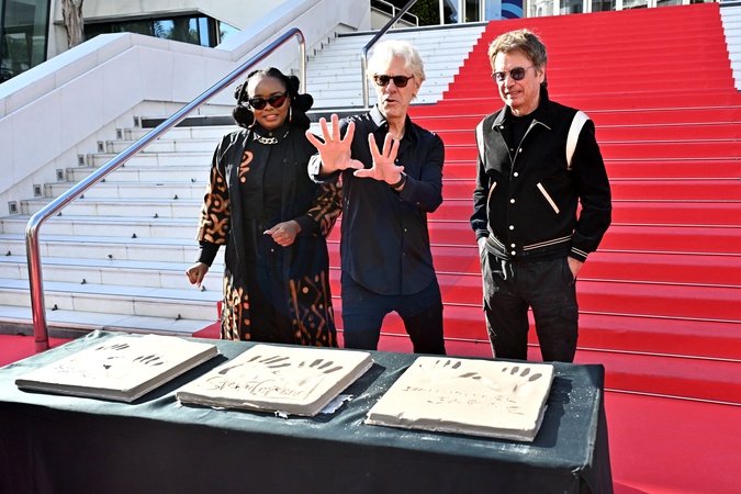 Yemi Alade, Stewart Copeland i Jean-Michel Jarre biorą udział w tradycyjnym odcisku dłoni na schodach Palais des Festivals w Cannes podczas MIDEM+24