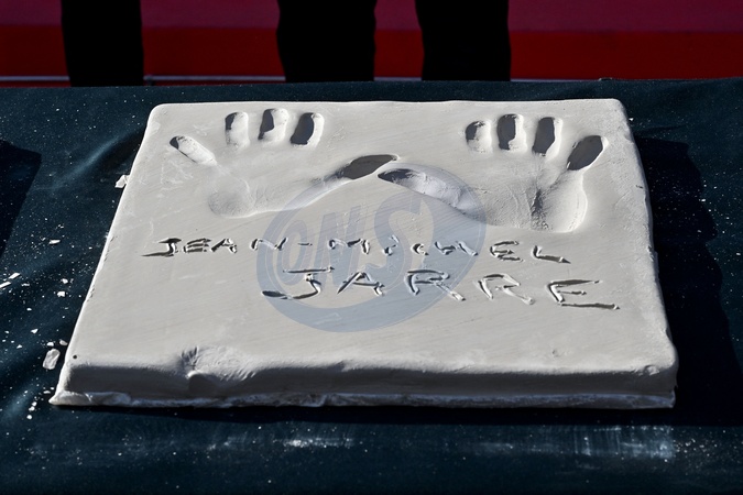 Yemi Alade, Stewart Copeland et Jean-Michel Jarre participent à la traditionnelle prise d'empreintes de mains sur les marches du Palais des Festivals de Cannes lors du MIDEM+24