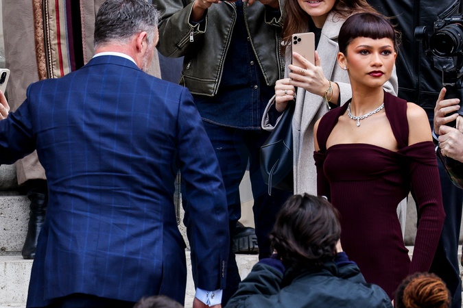 Zendaya arrive au défilé Fendi Haute Couture Printemps/Été 2024 dans le cadre de la Fashion Week de Paris (PFW), rue des Francs Bourgeois à Paris, France, le 25 janvier 2024. © Cyril Moreu/Bestimage Zendaya arrives at the Fendi Haute Couture Spring/Summer 2024 show as part of Paris Fashion Week (PFW), in Paris, France, on January 25, 2024.