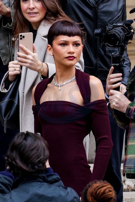 Zendaya arrive au défilé Fendi Haute Couture Printemps/Été 2024 dans le cadre de la Fashion Week de Paris (PFW), rue des Francs Bourgeois à Paris, France, le 25 janvier 2024. © Cyril Moreu/Bestimage Zendaya arrives at the Fendi Haute Couture Spring/Summer 2024 show as part of Paris Fashion Week (PFW), in Paris, France, on January 25, 2024.