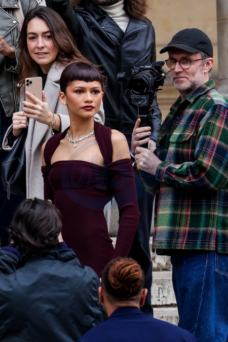 Zendaya arrive au défilé Fendi Haute Couture Printemps/Été 2024 dans le cadre de la Fashion Week de Paris (PFW), rue des Francs Bourgeois à Paris, France, le 25 janvier 2024. © Cyril Moreu/Bestimage Zendaya arrives at the Fendi Haute Couture Spring/Summer 2024 show as part of Paris Fashion Week (PFW), in Paris, France, on January 25, 2024.