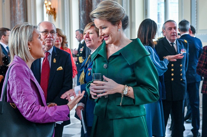La reine Mathilde de Belgique, Ludivine Dedonder, ministre belge de la Défense - Le roi et la reine de Belgique donnent une réception de Nouvel An au château de Laeken à Bruxelles, le 23 janvier 2024. A cette occasion, le couple royal a reçu les plus hauts représentants des institutions européennes à leur domicile, en ce début de présidence belge du Conseil de l'Union européenne. Reception by King Philippe and Queen Mathilde welcoming Permanent Representatives of the North Atlantic Council, Members of the International Secretariat and Military Representatives to NATO, as well as Officers General of Shape at the Laeken Castle. January 23rd, 2024 in Brussels, Belgium.