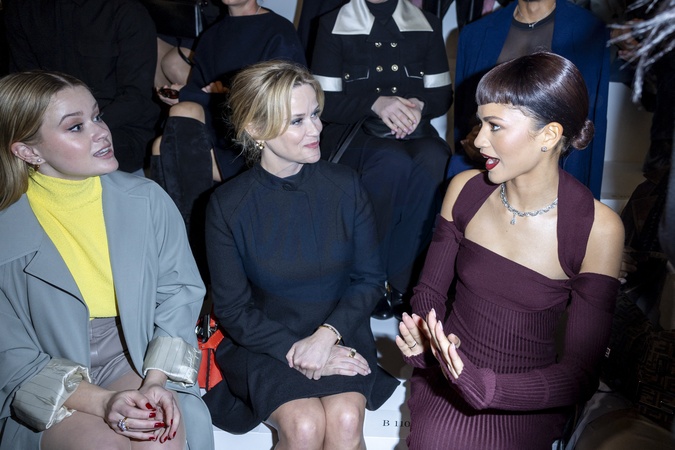 Ava Elizabeth Phillippe, Reese Witherspoon et Zendaya au front row du défilé Fendi Haute Couture Printemps/Été 2024 dans le cadre de la Fashion Week de Paris (PFW), au palais Brongniart à Paris, France, le 25 janvier 2024. © Olivier Borde/Bestimage Front Row Fendi Haute Couture Spring/Summer 2024 show as part of Paris Fashion Week (PFW), in Paris, France, on January 25, 2024.