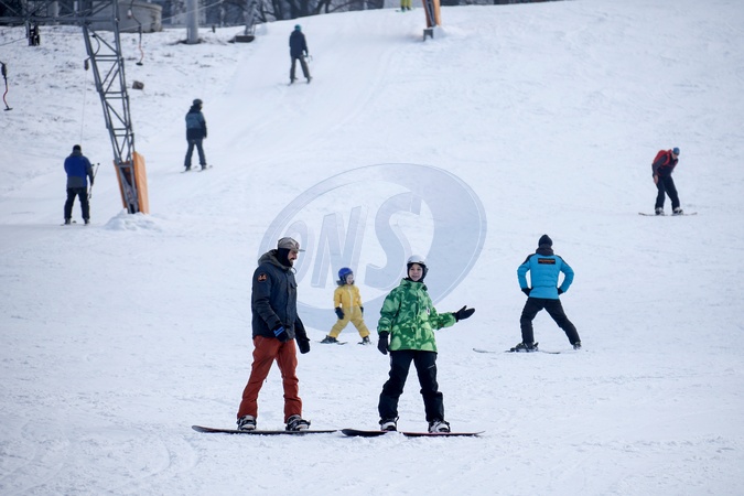 KYIV, UKRAINE - JANUARY 24, 2024 - People go snowboarding in Protasiv Yar, Kyiv, capital of Ukraine., Credit:Eugen Kotenko / Avalon