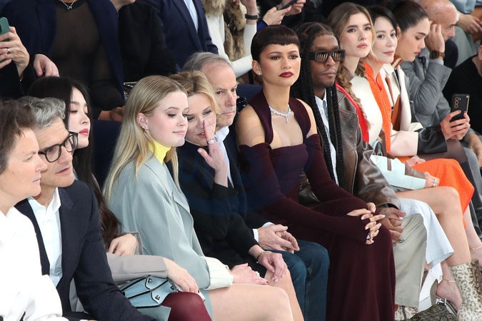 Valerie Brunschwig, Serge Brunschwig, Song Hye-kyo, Reese Witherspoon avec sa fille Ava Elizabeth Phillippe, Michael Burke (Président du Fashion group de LVMH) et Zendaya au front row du défilé Fendi Haute Couture Printemps/Été 2024 dans le cadre de la Fashion Week de Paris (PFW), au palais Brongniart à Paris, France, le 25 janvier 2024. © Bertrand Rindoff/Bestimage Front Row Fendi Haute Couture Spring/Summer 2024 show as part of Paris Fashion Week (PFW), in Paris, France, on January 25, 2024.