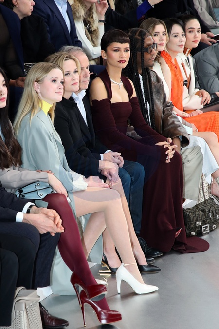 Serge Brunschwig, Reese Witherspoon avec sa fille Ava Elizabeth Phillippe, Michael Burke (Président du Fashion group de LVMH) et Zendaya au front row du défilé Fendi Haute Couture Printemps/Été 2024 dans le cadre de la Fashion Week de Paris (PFW), au palais Brongniart à Paris, France, le 25 janvier 2024. © Bertrand Rindoff/Bestimage Front Row Fendi Haute Couture Spring/Summer 2024 show as part of Paris Fashion Week (PFW), in Paris, France, on January 25, 2024.