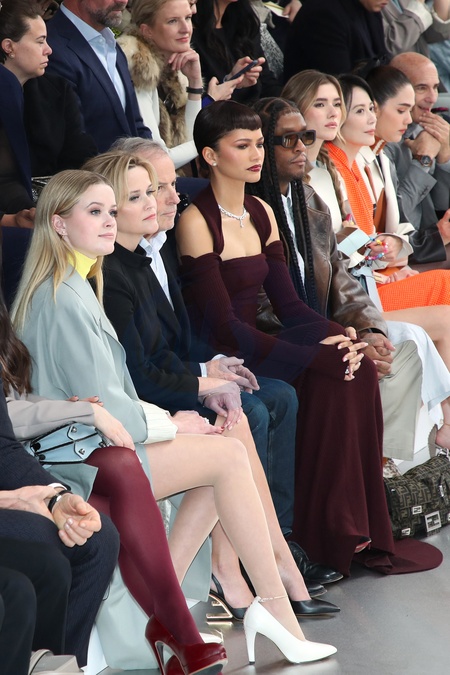 Reese Witherspoon avec sa fille Ava Elizabeth Phillippe, Michael Burke (Président du Fashion group de LVMH) et Zendaya au front row du défilé Fendi Haute Couture Printemps/Été 2024 dans le cadre de la Fashion Week de Paris (PFW), au palais Brongniart à Paris, France, le 25 janvier 2024. © Bertrand Rindoff/Bestimage Front Row Fendi Haute Couture Spring/Summer 2024 show as part of Paris Fashion Week (PFW), in Paris, France, on January 25, 2024.