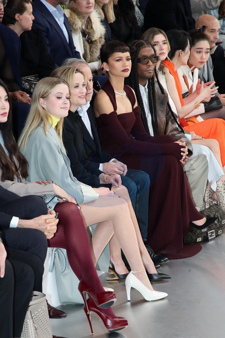 Reese Witherspoon avec sa fille Ava Elizabeth Phillippe, Michael Burke (Président du Fashion group de LVMH) et Zendaya au front row du défilé Fendi Haute Couture Printemps/Été 2024 dans le cadre de la Fashion Week de Paris (PFW), au palais Brongniart à Paris, France, le 25 janvier 2024. © Bertrand Rindoff/Bestimage Front Row Fendi Haute Couture Spring/Summer 2024 show as part of Paris Fashion Week (PFW), in Paris, France, on January 25, 2024.