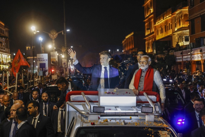 Prezydent Francji Emmanuel Macron i premier Indii Narendra Modi podczas roadshow w Jaipur