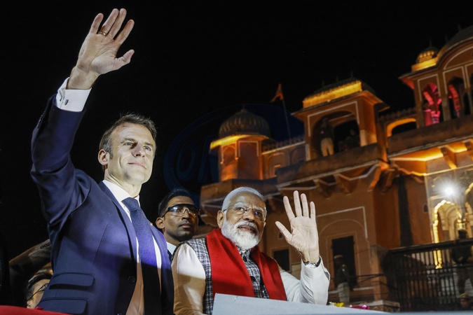 Prezydent Francji Emmanuel Macron i premier Indii Narendra Modi podczas roadshow w Jaipur