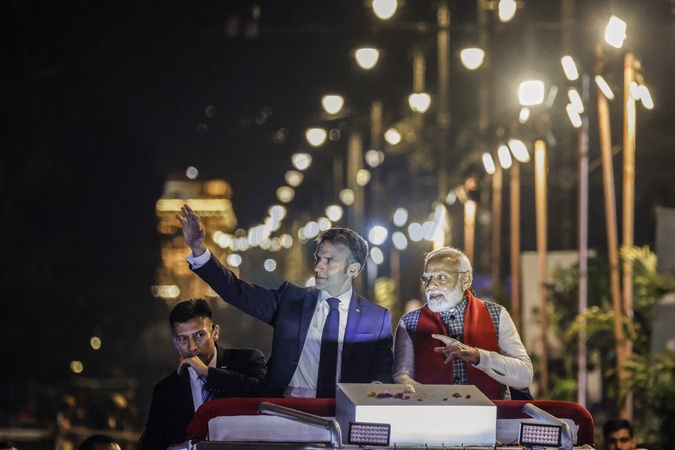 Prezydent Francji Emmanuel Macron i premier Indii Narendra Modi podczas roadshow w Jaipur
