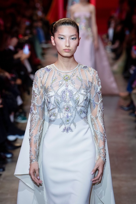 Elie Saab Model On Catwalk, Paris Haute Couture Fashion Week 2024 HC For Spring Summer, Defile, Fashion Show Runway Collection, Modelwear, Modeschau Laufsteg France, PARHCS24, Credit:www.fashionpps.com / Avalon