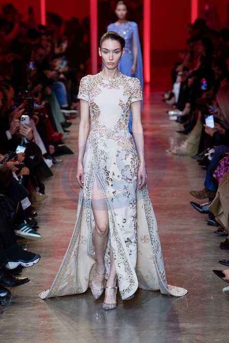 Elie Saab Model On Catwalk, Paris Haute Couture Fashion Week 2024 HC For Spring Summer, Defile, Fashion Show Runway Collection, Modelwear, Modeschau Laufsteg France, PARHCS24, Credit:www.fashionpps.com / Avalon
