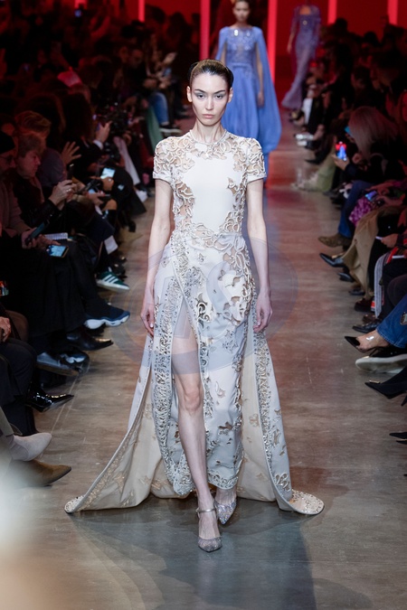 Elie Saab Model On Catwalk, Paris Haute Couture Fashion Week 2024 HC For Spring Summer, Defile, Fashion Show Runway Collection, Modelwear, Modeschau Laufsteg France, PARHCS24, Credit:www.fashionpps.com / Avalon