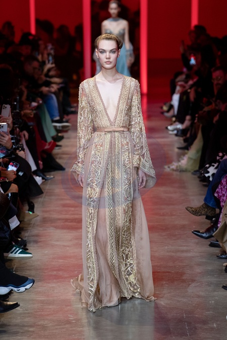 Elie Saab Model On Catwalk, Paris Haute Couture Fashion Week 2024 HC For Spring Summer, Defile, Fashion Show Runway Collection, Modelwear, Modeschau Laufsteg France, PARHCS24, Credit:www.fashionpps.com / Avalon