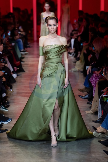 Elie Saab Model On Catwalk, Paris Haute Couture Fashion Week 2024 HC For Spring Summer, Defile, Fashion Show Runway Collection, Modelwear, Modeschau Laufsteg France, PARHCS24, Credit:www.fashionpps.com / Avalon