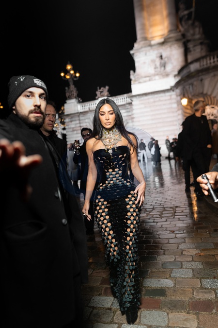 Kim Kardashian - La famille Kardashian fait une apparition remarquée au défilé de la maison Margiela Haute Couture printemps/été 2024 (PFW) à Paris le 25 janvier 2024. © Tiziano Da Silva / Pierre Perusseau / Bestimage The Kardashian family make an appearance at the Margiela Haute Couture Spring/Summer 2024 (PFW) fashion show in Paris on 25 January 2024.
