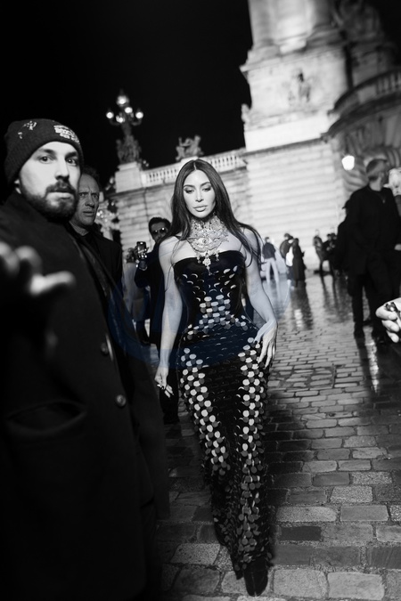 Kim Kardashian - La famille Kardashian fait une apparition remarquée au défilé de la maison Margiela Haute Couture printemps/été 2024 (PFW) à Paris le 25 janvier 2024. © Tiziano Da Silva / Pierre Perusseau / Bestimage The Kardashian family make an appearance at the Margiela Haute Couture Spring/Summer 2024 (PFW) fashion show in Paris on 25 January 2024.