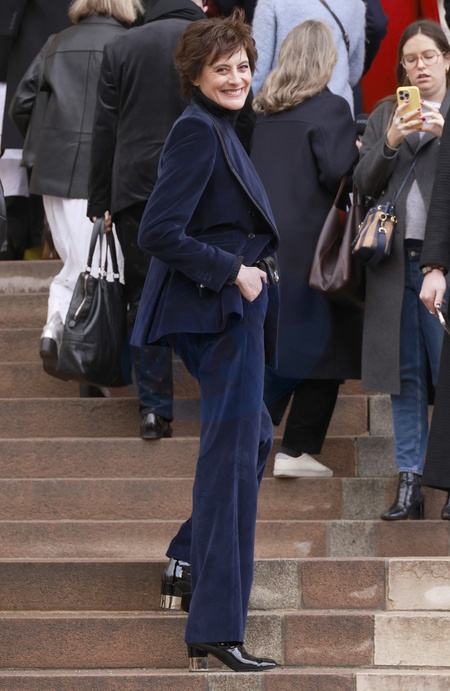 Inès de la Fressange - Arrivées au défilé de mode Schiaparelli Haute Couture printemps/été 2024 (PFW) à Paris le 22 janvier 2024. © Christophe Aubert via Bestimage Arrivals at the Schiaparelli Haute Couture spring/summer 2024 (PFW) fashion show in Paris on 22 January 2024.