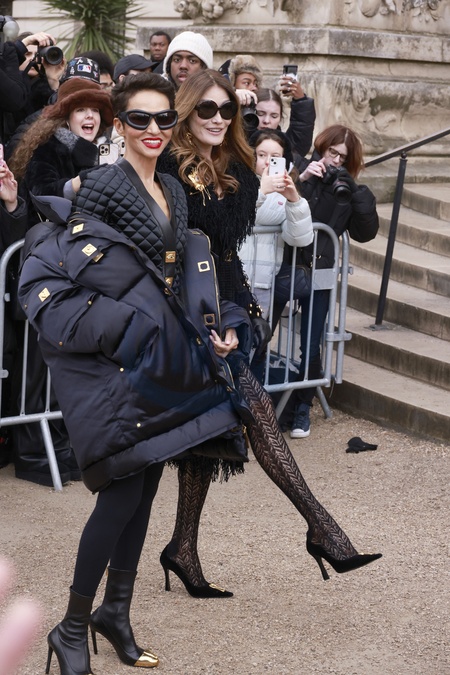 Farida Khelfa, Carla Bruni - Arrivées au défilé de mode Schiaparelli Haute Couture printemps/été 2024 (PFW) à Paris le 22 janvier 2024. © Christophe Aubert via Bestimage Arrivals at the Schiaparelli Haute Couture spring/summer 2024 (PFW) fashion show in Paris on 22 January 2024.