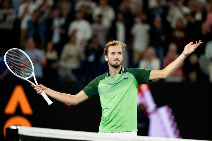 Daniil Medvedev remporte la demi-finale face à A.Zverev (5-7, 3-6, 7-6, 7-6, 6-3) lors de l'Open d'Australie à Melbourne, le 26 janvier 2024. © Virginie Bouyer / Panoramic / Bestimage Daniil Medvedev wins the semi-final against A.Zverev (5-7, 3-6, 7-6, 7-6, 6-3) at the Australian Open in Melbourne, January 26, 2024.