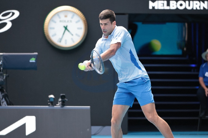 Novak Djokovic éliminé en demi-finale par J.Sinner (6-1, 6-2, 6-7 [8-6], 6-3) lors de l'Open d'Australie à Melbourne, le 26 janvier 2024. © Panoramic / Bestimage Novak Djokovic eliminated in the semi-final by J.Sinner (6-1, 6-2, 6-7 [8-6], 6-3) at the Australian Open in Melbourne, January 26, 2024.
